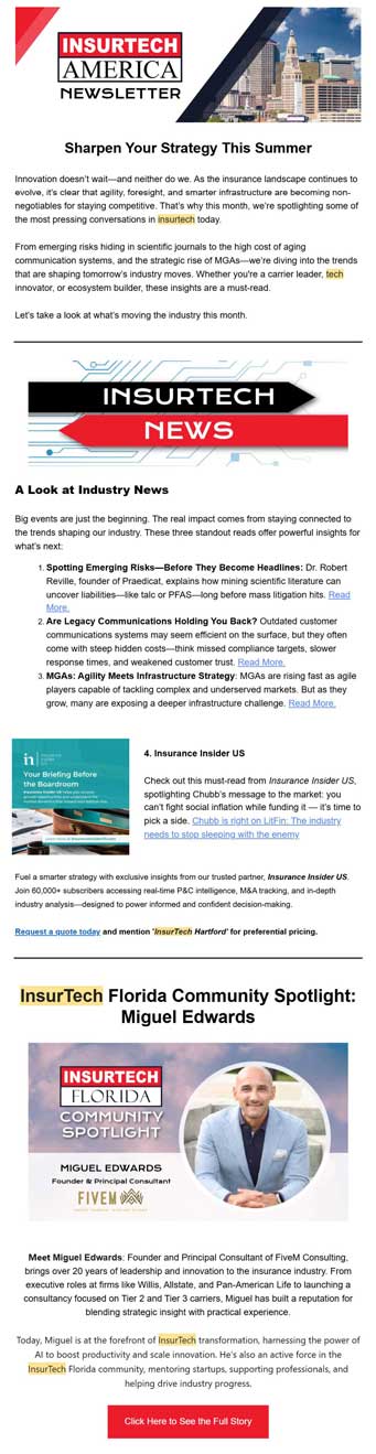 Build an InsurTech community with InsurTech America. We will give you the tools you need to host networking events for insurance professionals in your area.